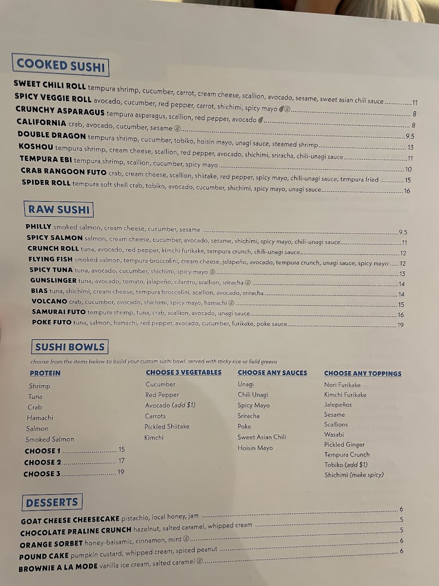 tuna, shichimi, scallion, cream cheese, sriracha, tempura broccolini, avocado